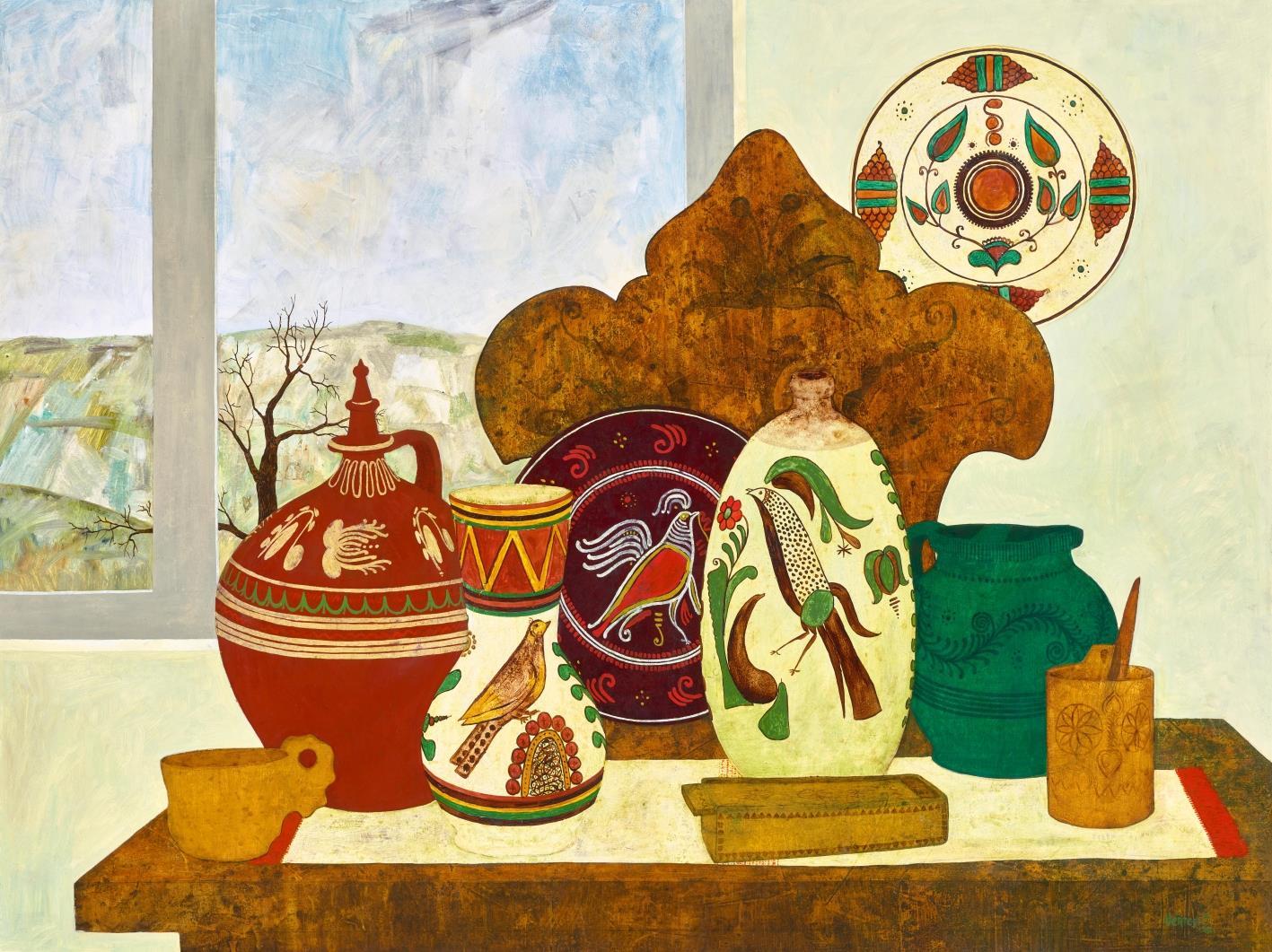 101 Vértesi Péter: Still-Life with Hungarian Ceramics (Debrecen, Tiszafüred, Vámfalu), 1982