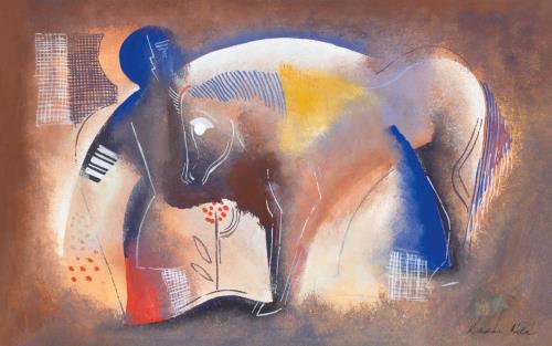 37 Kádár Béla: Art Deco Scene with Horse and Figure, c.1930