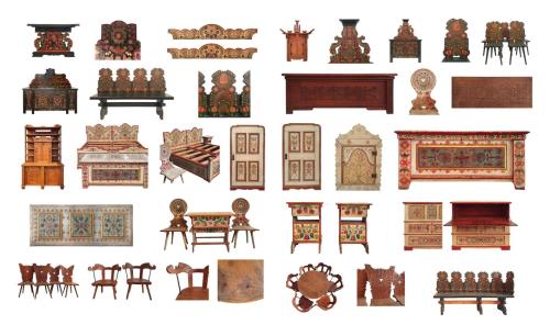 62 Sztelek Dénestervei és faragása, Nagy Sándor dekorterve: Mint condition furnishing of Family Gellér in Gödöllő - Together 40 pieces of furniture
