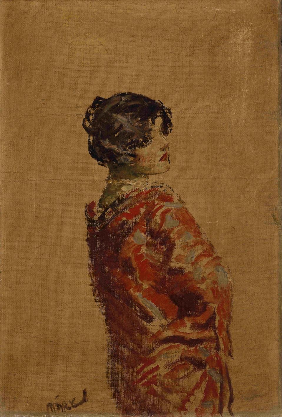 96 Márk Lajos: Girl in Red Kimono with Hands on her Hip