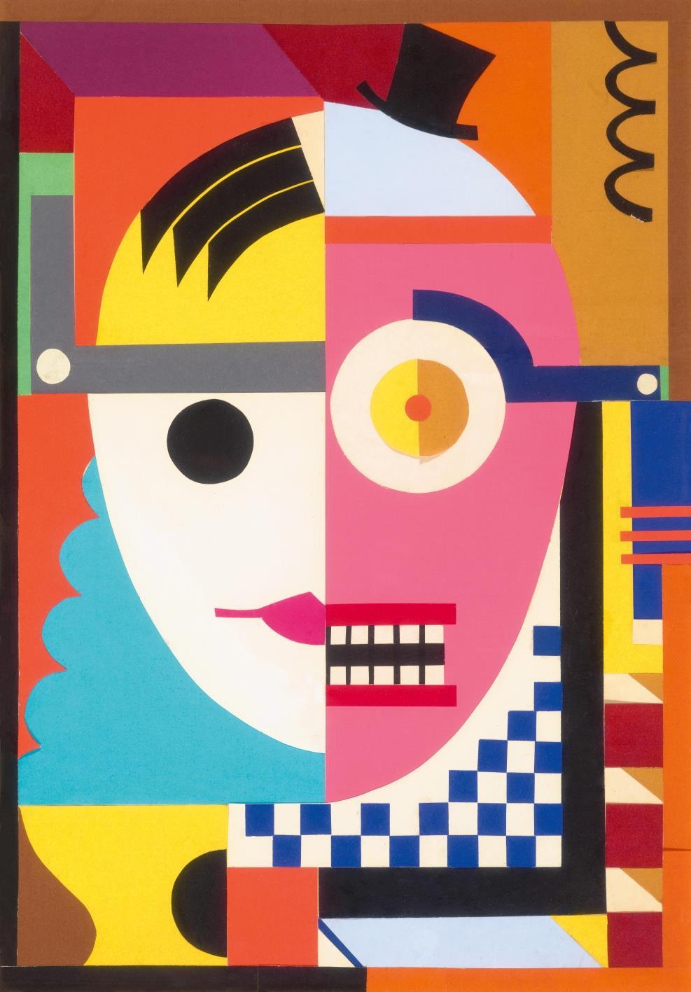 színes papírok ragasztott kollázsa kartonon