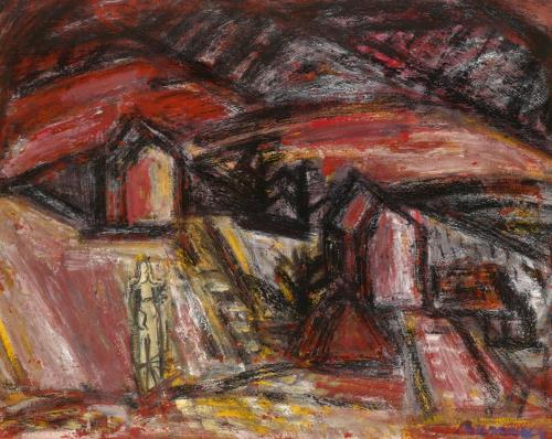 191 Barcsay Jenő: Hilly Landscape with a Figure
