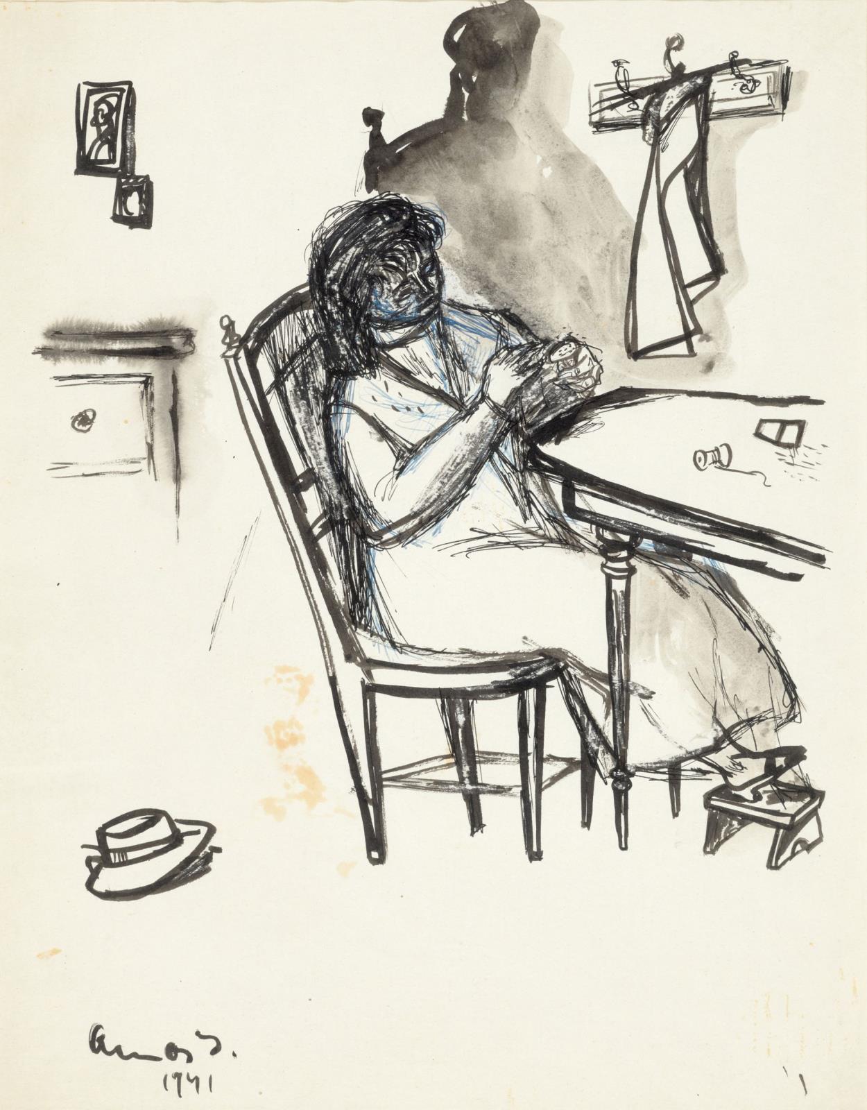 130 Ámos Imre: In the Kitchen (Woman Embroidering), 1941