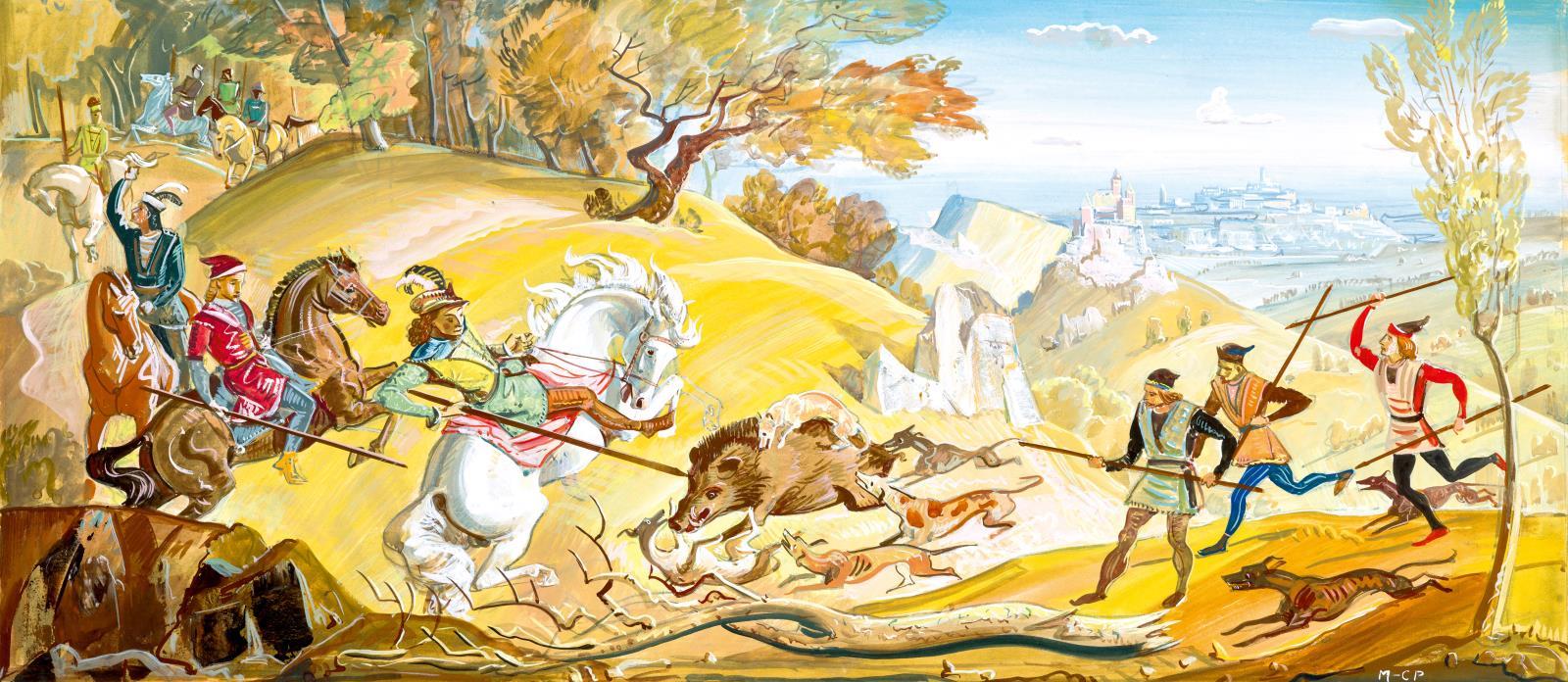 6 Molnár C. Pál: King Matthias I. on a Hunt in the Buda Hills, with Buda Castle as Backdrop, c. 1939