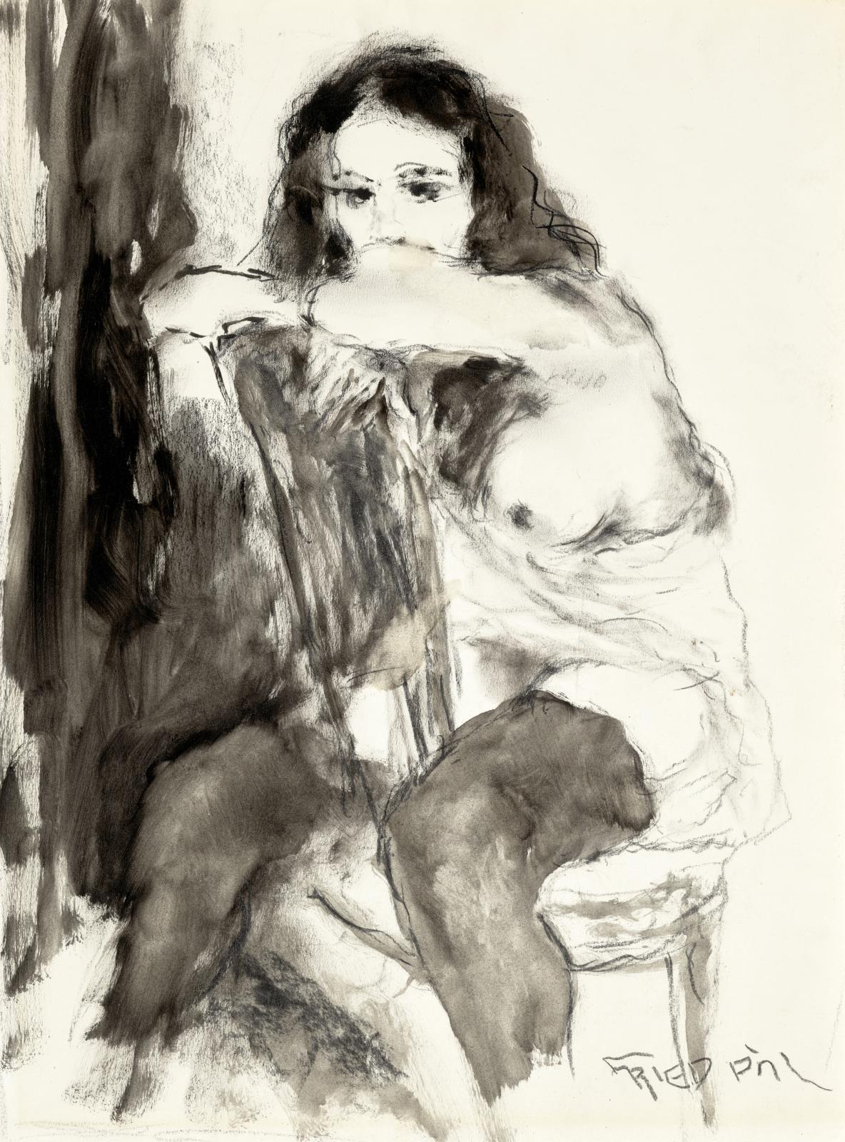 Lavírozott tus, szén, papír / Indian ink, chalk on paper