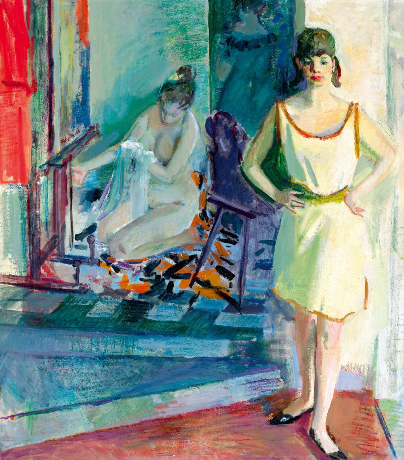 94 Fáy Győző: Model in front of a Depiction of Her (In the Studio)