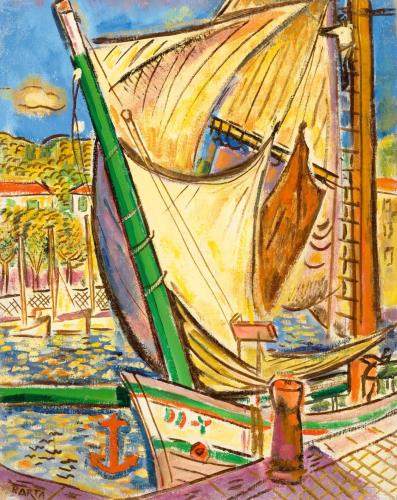 160 Barta László: On the Riviera (Seafaring Sailboat in Port)