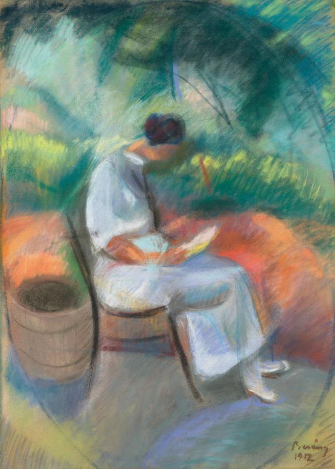 104 Berény Róbert: Reading Woman in a Mansion Garden (The Artist's Wife, Léni), 1912
