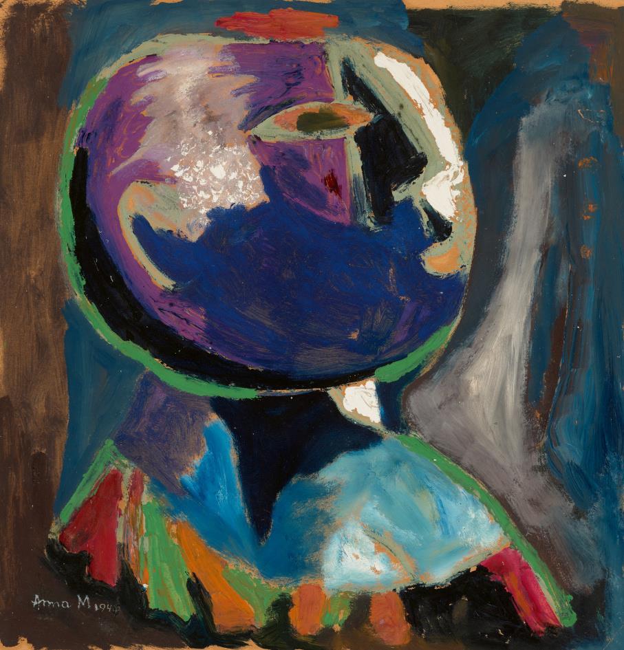 Jelezve balra lent: Anna M. 946, Jelezve a hátoldalon: 16/46 Fej, 1948/16 31,5x31, papír, olaj, J.balra lent
