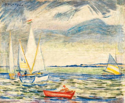 165 Vaszary János: Lake Balaton with Sailboats, c. 1924