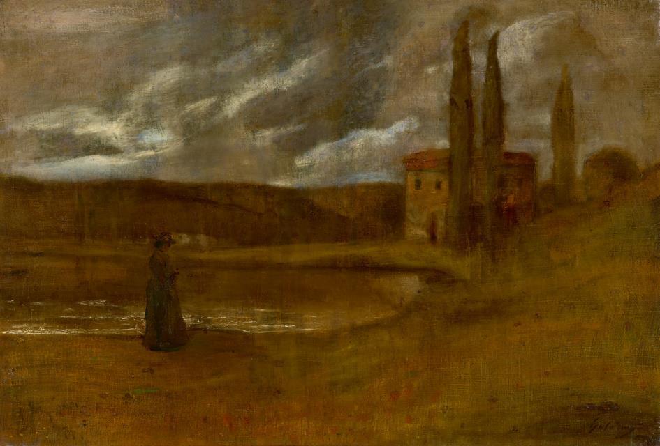 170 Gulácsy Lajos: Remembrance by the Lake, Italy (Landscape in Moonlight, Cloud Migration, Italy), circa 1902
