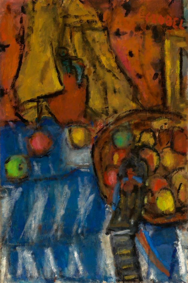 184 Czóbel Béla: Still Life in the Studio with Blue Tablecloth, 1960s