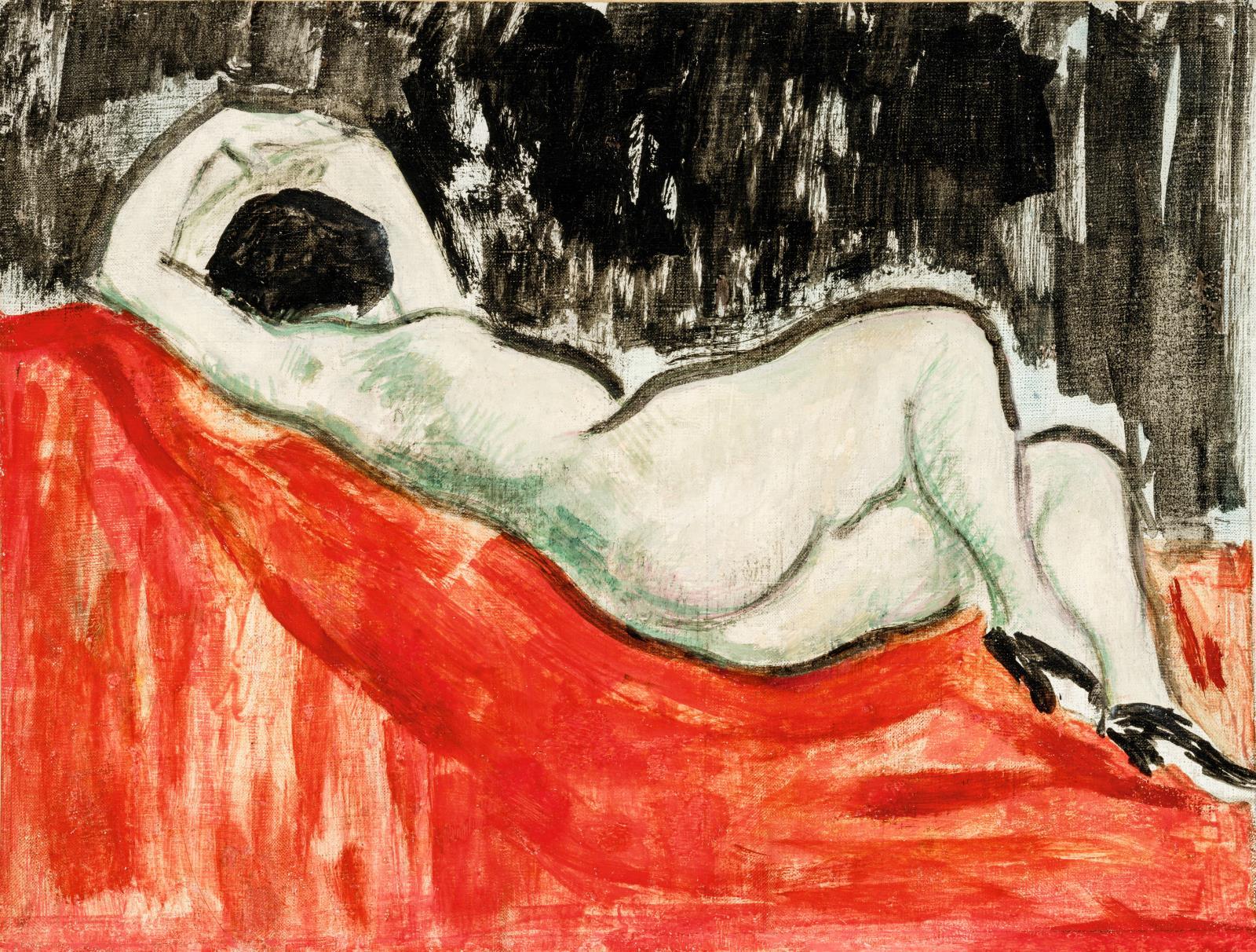 62 Vaszary János: Parisian Model (Lying Nude on the Red Drapery), 1930s