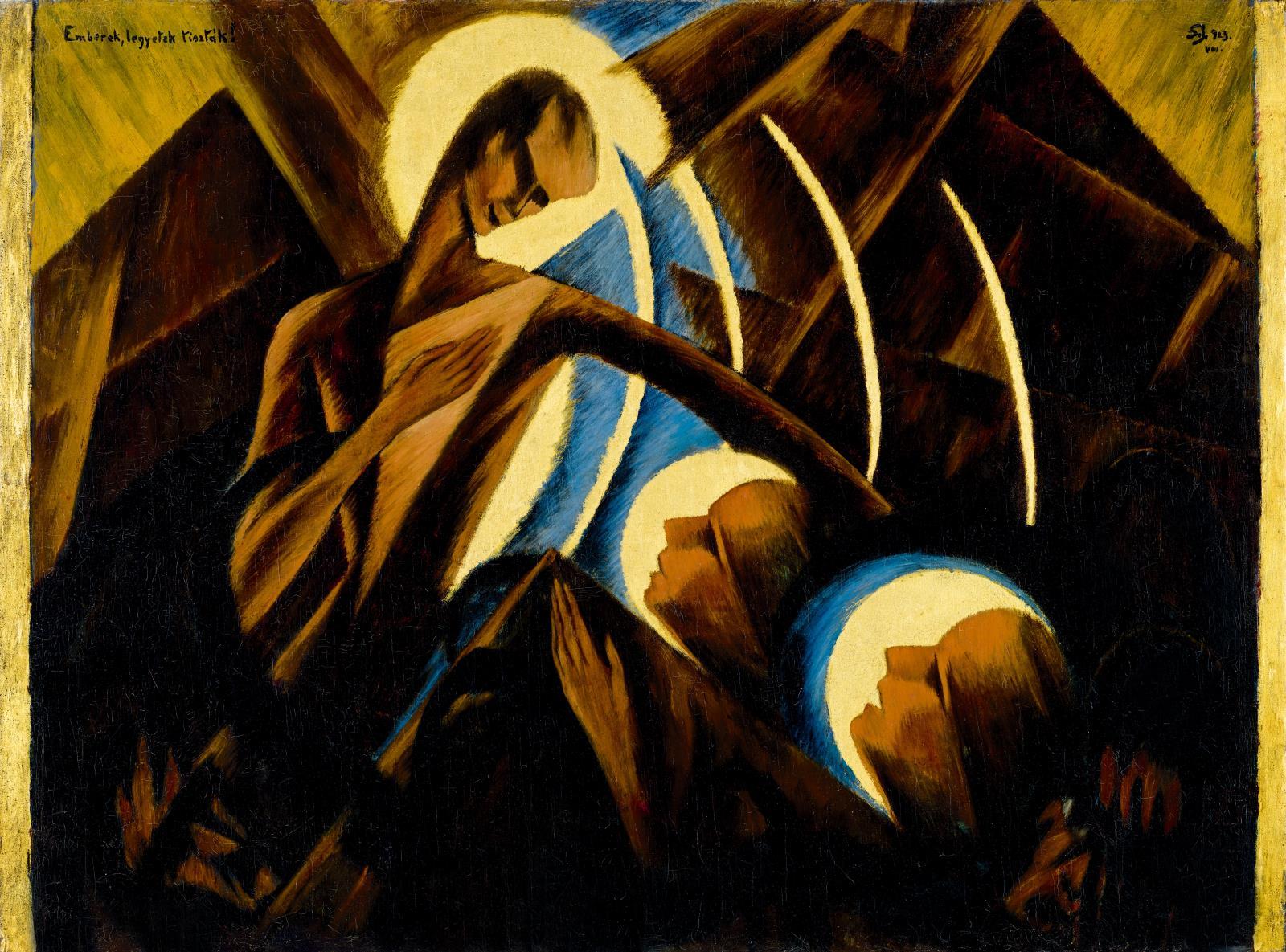 Jelezve jobbra fent: SJ 923. VIII, Jelezve balra fent: Emberek, legyetek, tiszták!, A vászon hátoldalán a Magyar Nemzeti Galéria Új Magyar Képtárának letéti cédulája