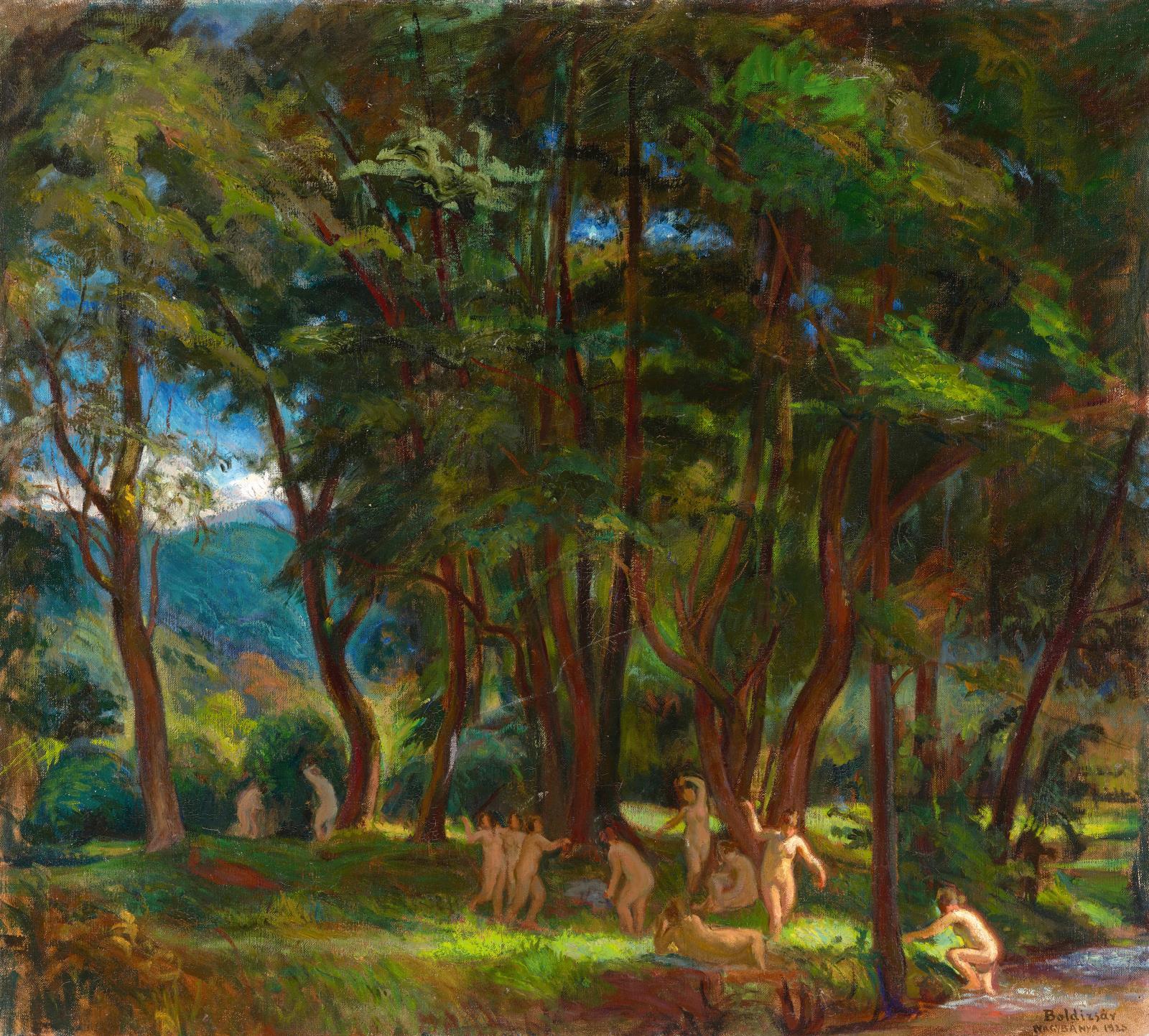 187 Boldizsár István: Nude Girls Bathing in the Forest Brook (Nagybánya, Summer), 1925