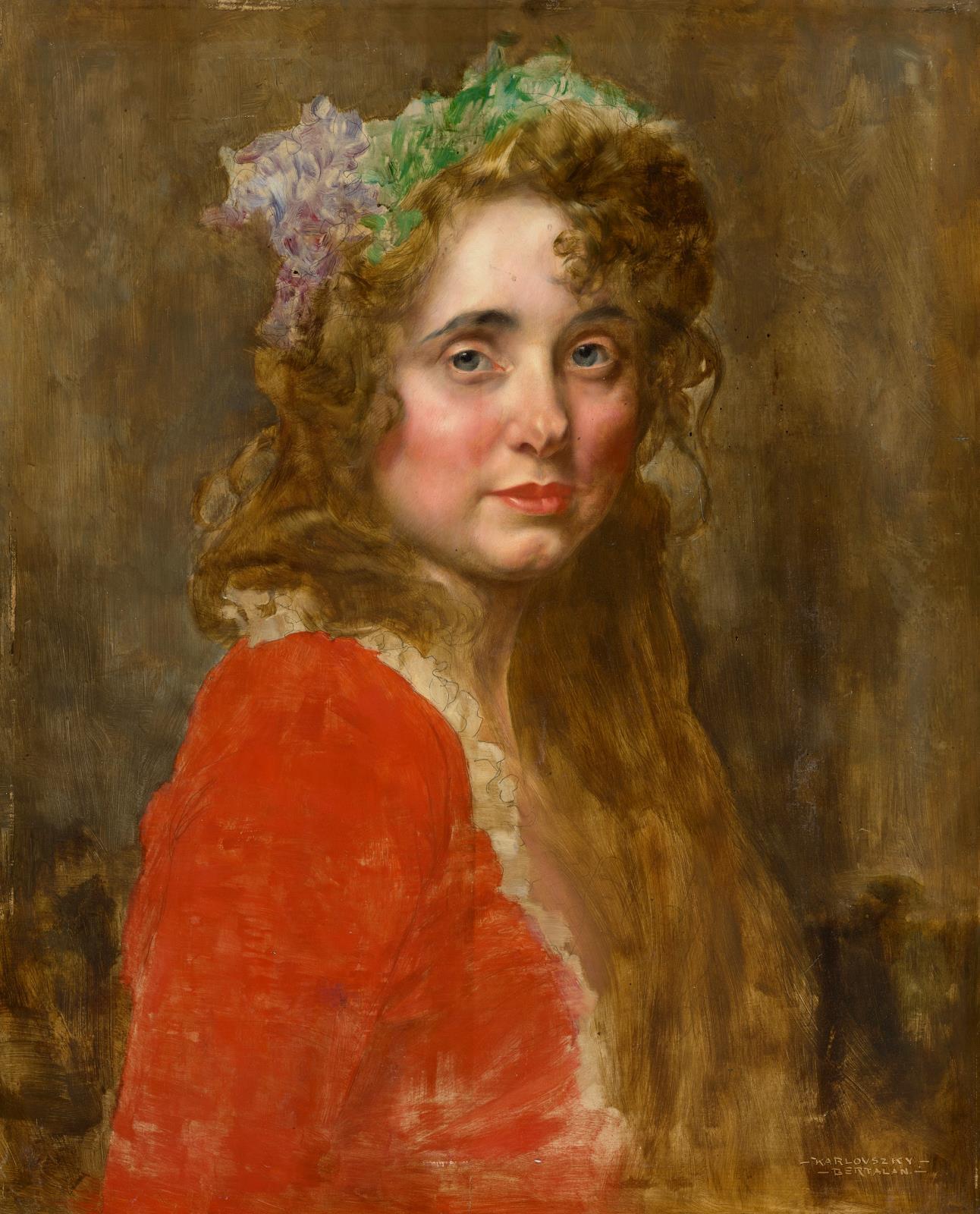 235 Karlovszky Bertalan: Portrait of a Young Blonde Girl with Wisteria in her Hair