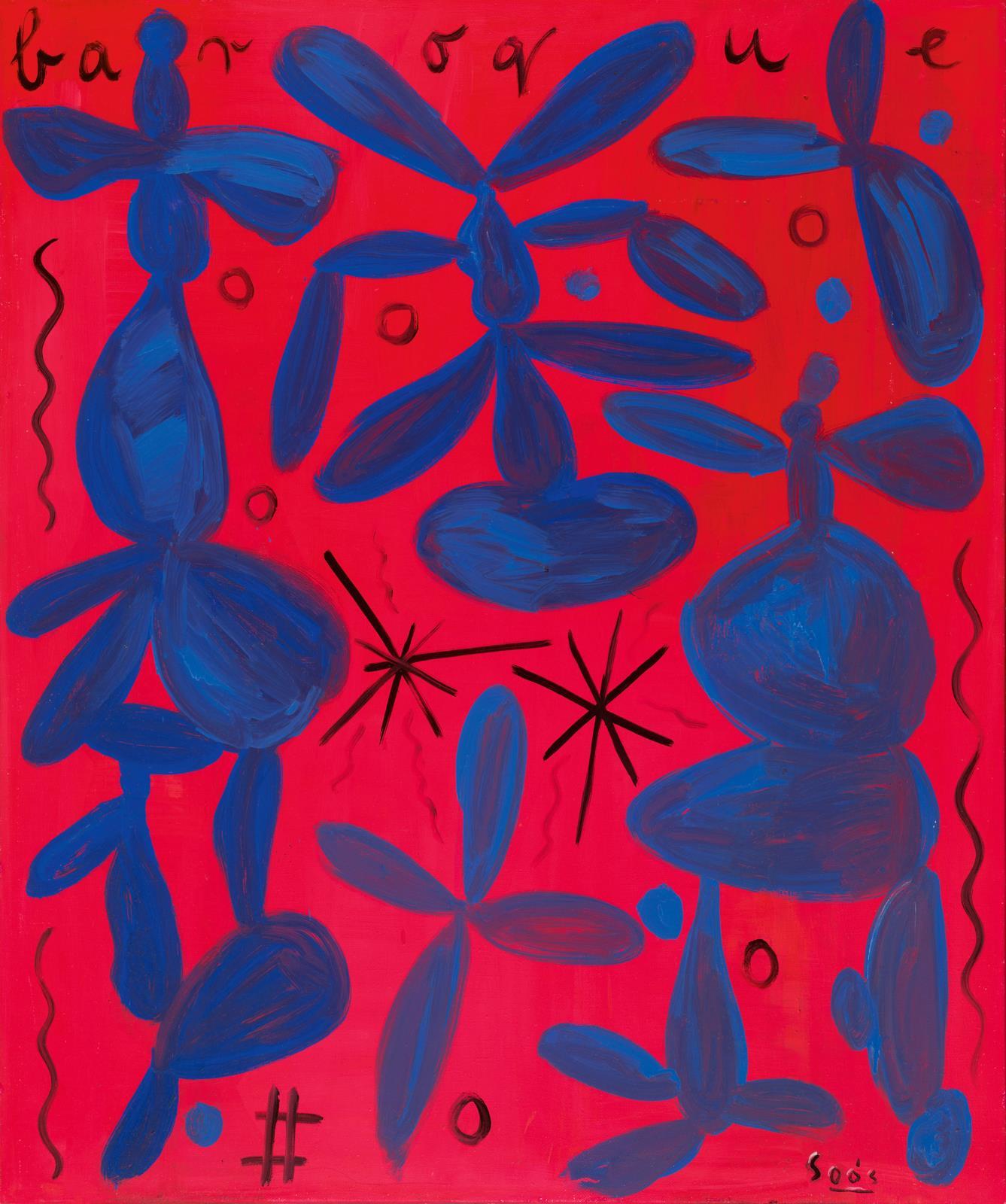 Jelezve jobbra lent: Soós, Jelezve a hátoldalon autográf felirat: Baroque Soós 1989