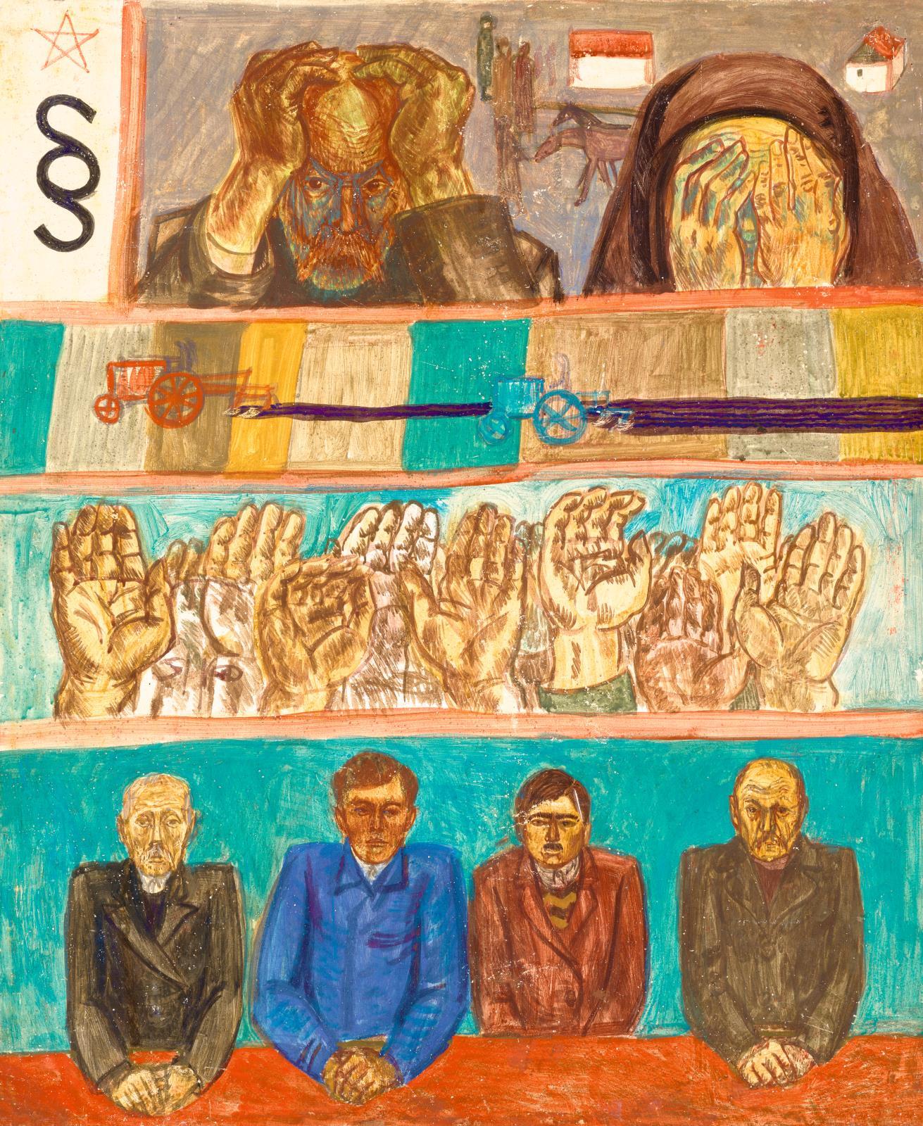 Jelezve a hátoldalon autográf felirat: Szalay F. Szalay Ferenc Vázlat a Történelemhez és Iskola Galéria kiállítási cédula, továbbá Műcsarnok kiállítási raglap