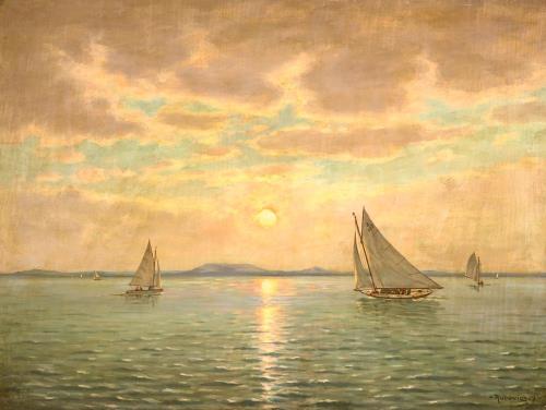229 Rubovics Márk: Lake Balaton with Sailing Boats