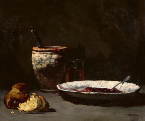 24 Théodule-Augustin Ribot: "Still-Life with Pottery (Marmalade and