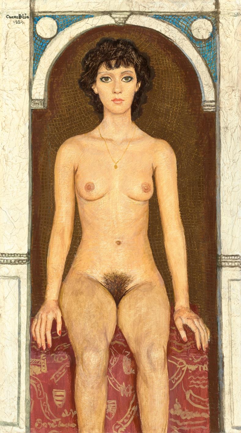 32 Czene Béla: Nude Sitting in front of Golden Mosaic, 1984