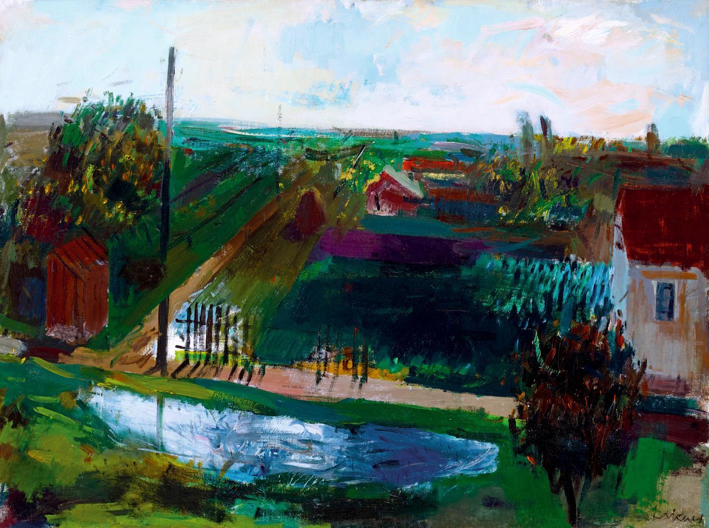 34 Lakner László: Tájkép (Fények eső után), 1956
