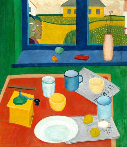 116 Czimra Gyula: Műtermi kilátás francia és magyar újsággal, 1930 körül