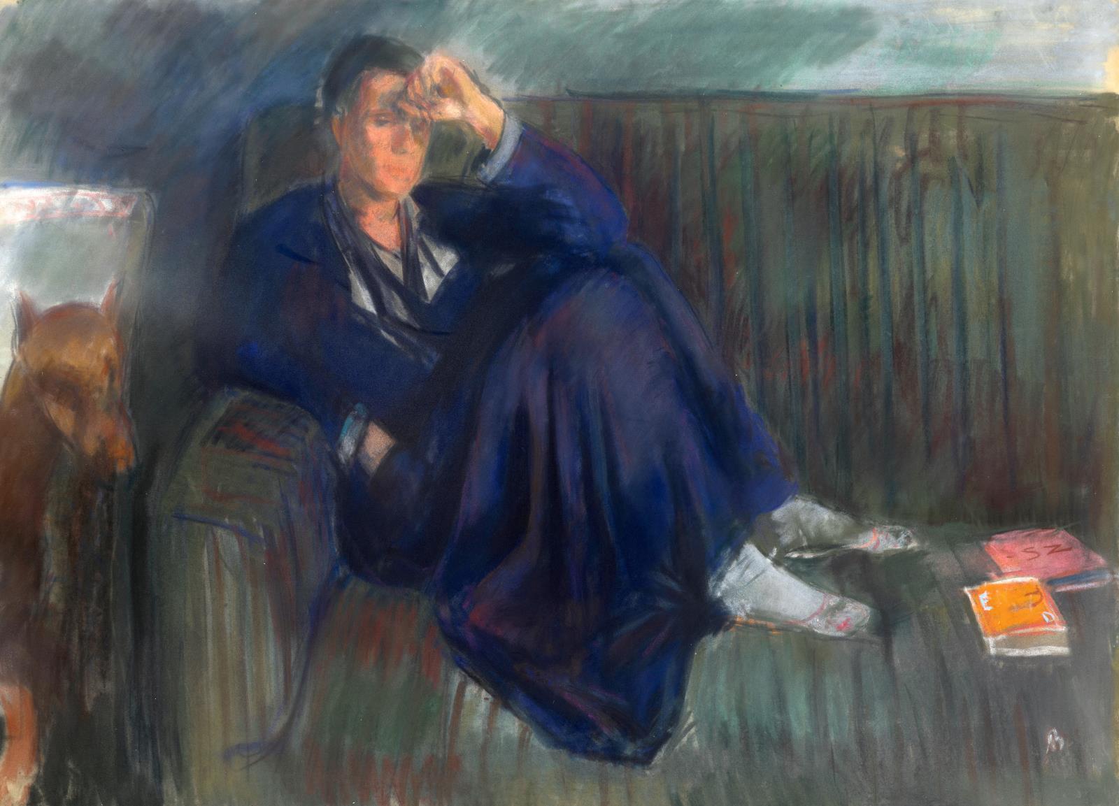 184 Bernáth Aurél: Mattioni Eszter portréja kedvenc kutyájával, 1943