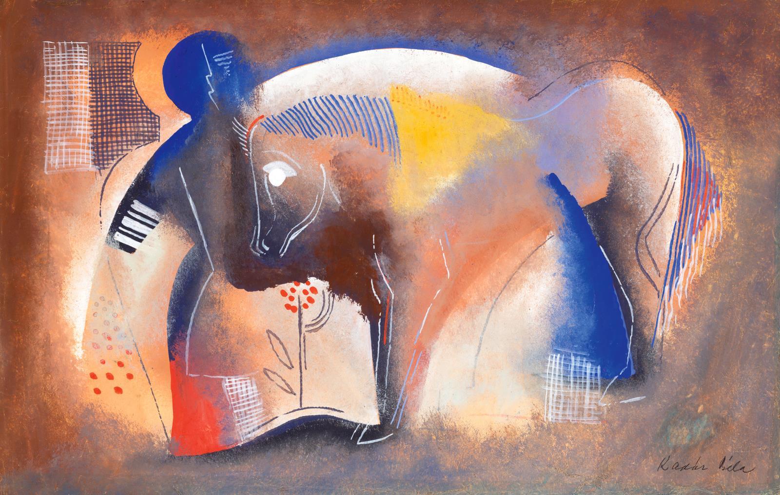 229 Kádár Béla: Art deco jelenet lóval és figurával, 1930 körül