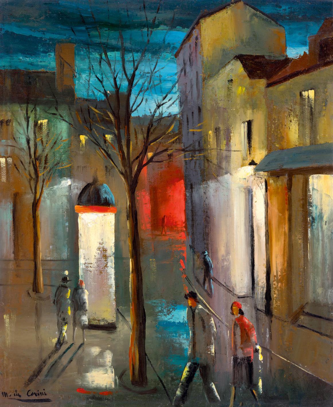 93 Corini Margit: Párizsi utcarészlet hirdetőoszloppal