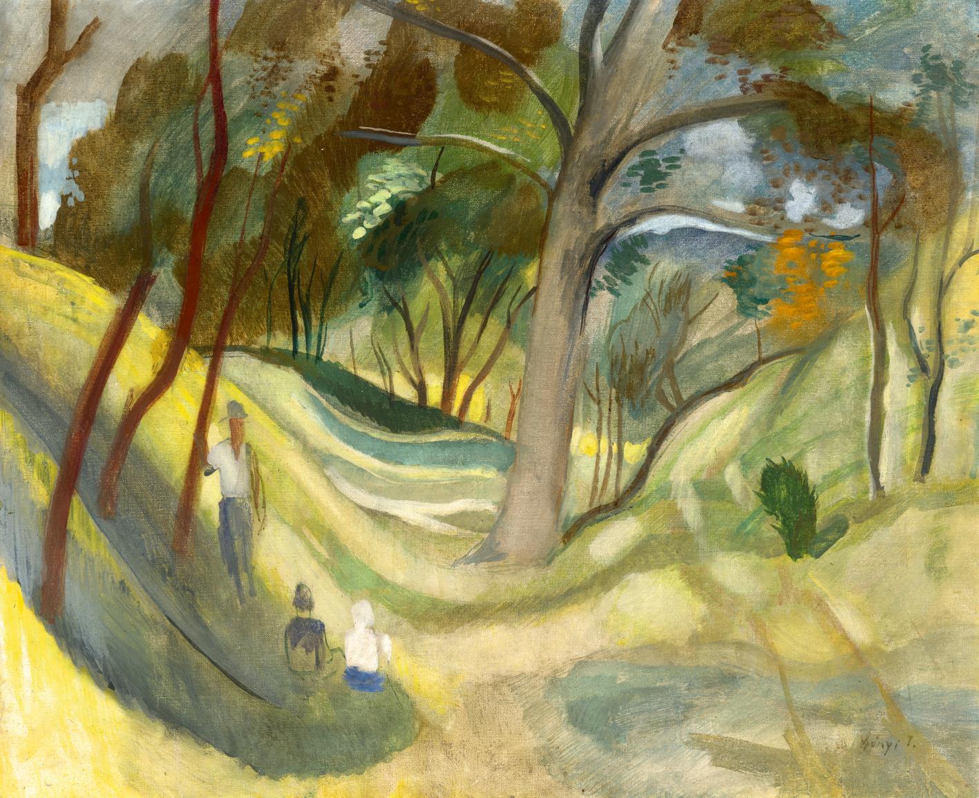 168 Szőnyi István: Zebegényi dombtetőn (Család, Tisztáson), 1930 körül