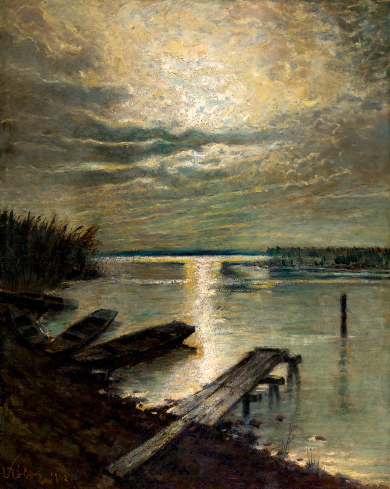 91 Kóbor Henrik: Balatoni móló különleges fényviszonyok között, 1942