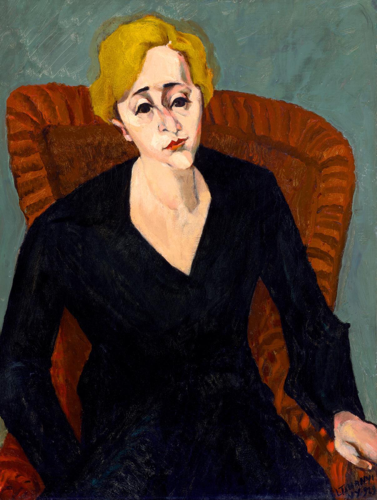 129 Tihanyi Lajos: New York-i hegedűnűvésznő (Karosszékben ülő nő, Charlotte Kármán arcképe), 1929