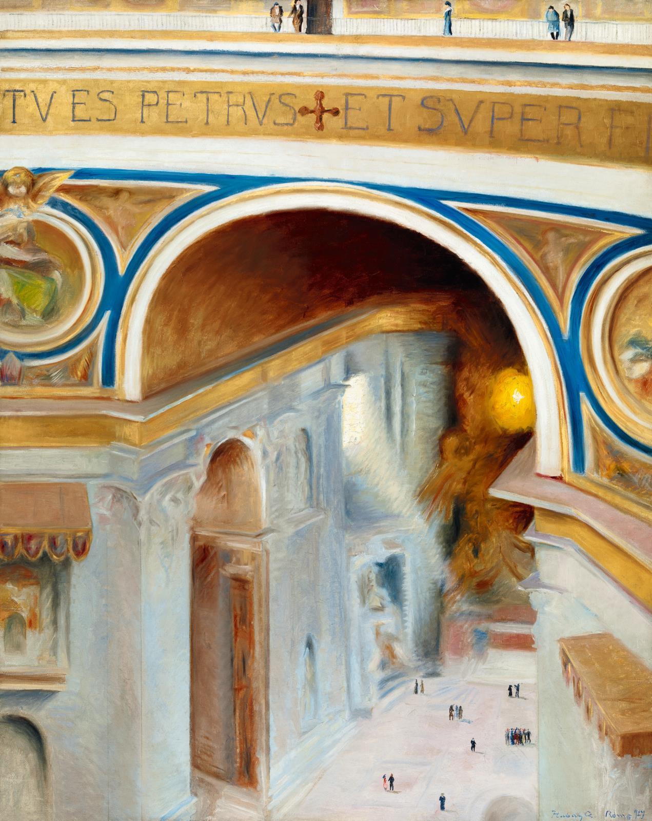 165 Hubay Cebrián Andor: Róma (Turisták Rómában a Szent Péter templom Michelangelo kupolájában), 1927