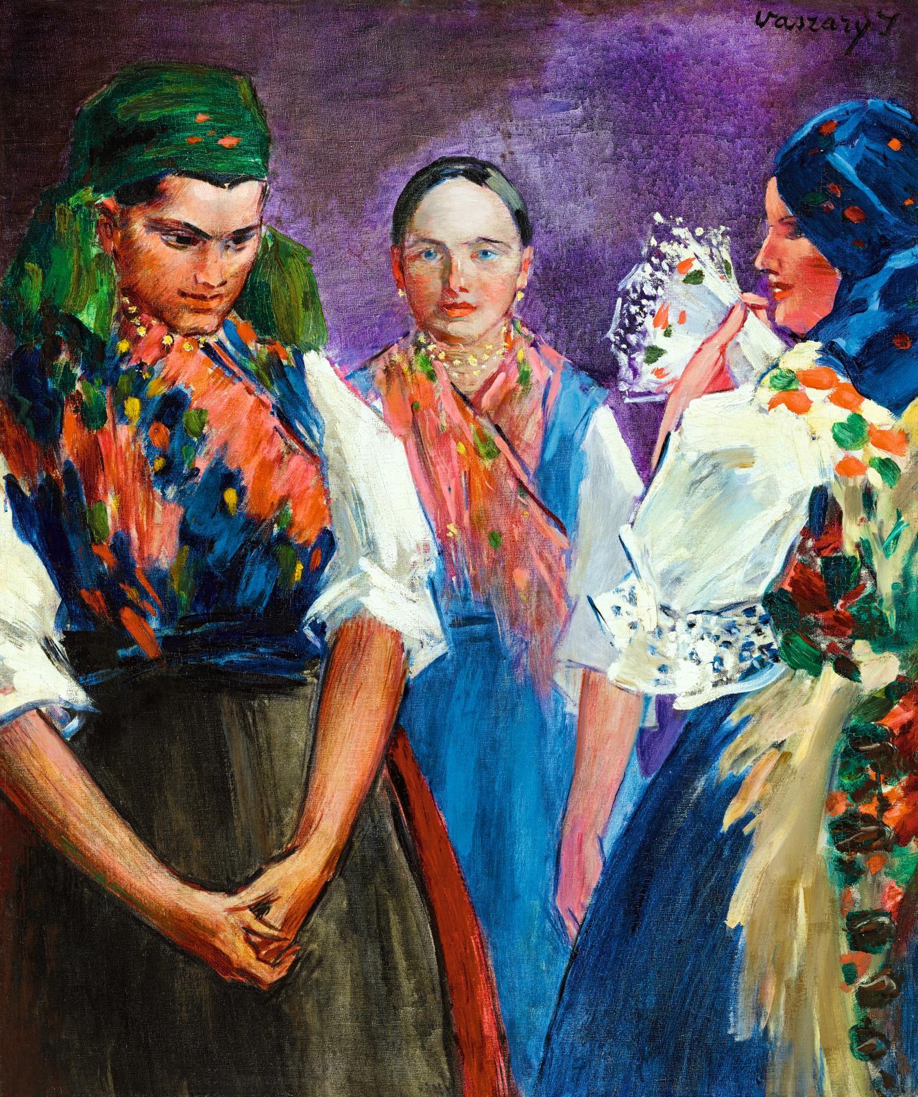 242 Vaszary János: Vasárnap délelőtt (Lányok ünneplőben), 1930 körül