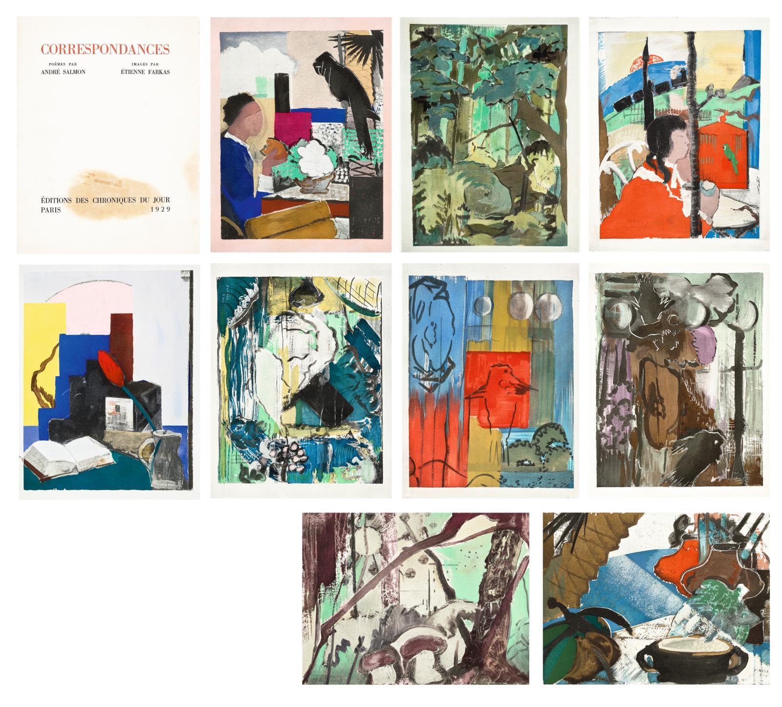263 Farkas István: Correspondances mappa, 1929 (Farkas István és André Salmon költő grafikai mappája, mely 9 festményről készült pochoirnyomatot és a hozzá tartozó borítót tartalmazza)