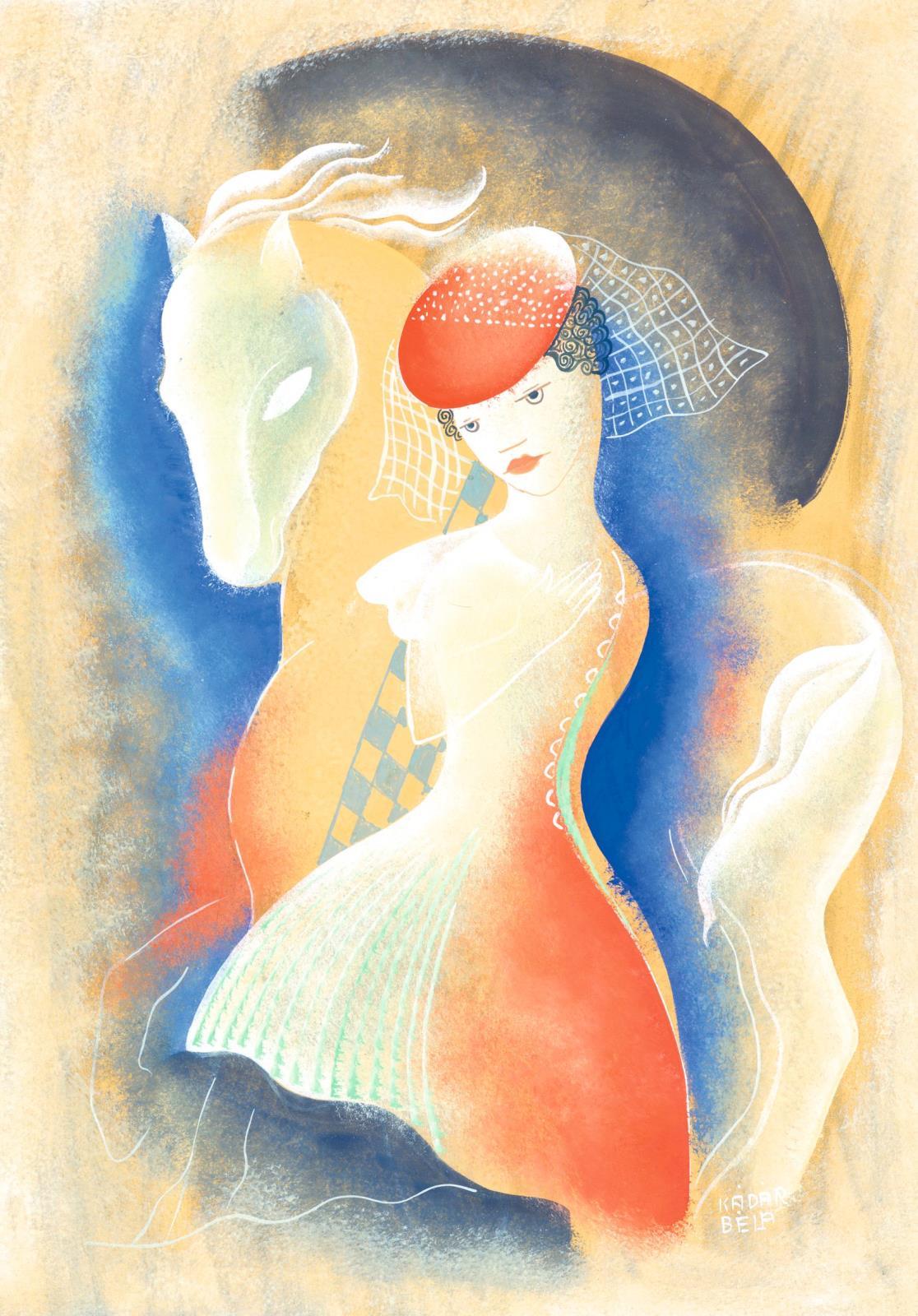 31 Kádár Béla: Műlovarnő piros kalapban, 1930-as évek