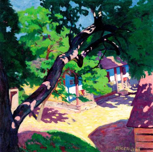 153 Szigeti Jenő: Napsütötte udvar Nagybányán, 1910 körül