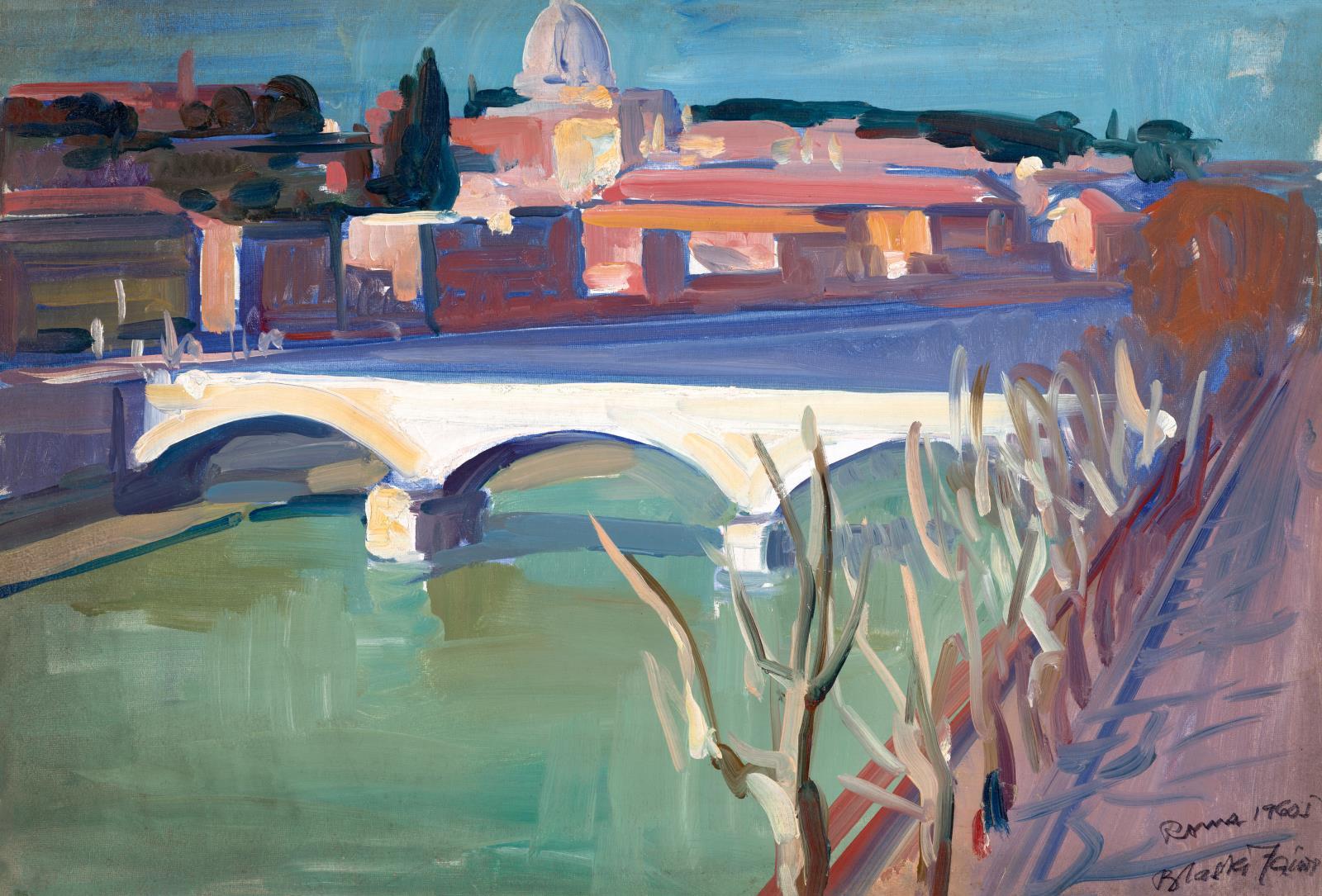 8 Blaskó János: Róma napsütésben (A római Tevere-part háttérben a Szent Péter Bazilika Michelangelo kupolával), 1960