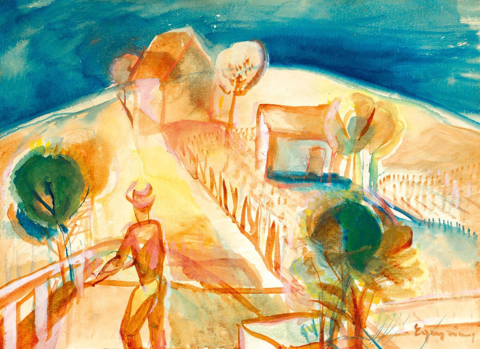 45 Egry József: A festő (Kilátás a művész badacsonyi teraszáról), 1931 körül