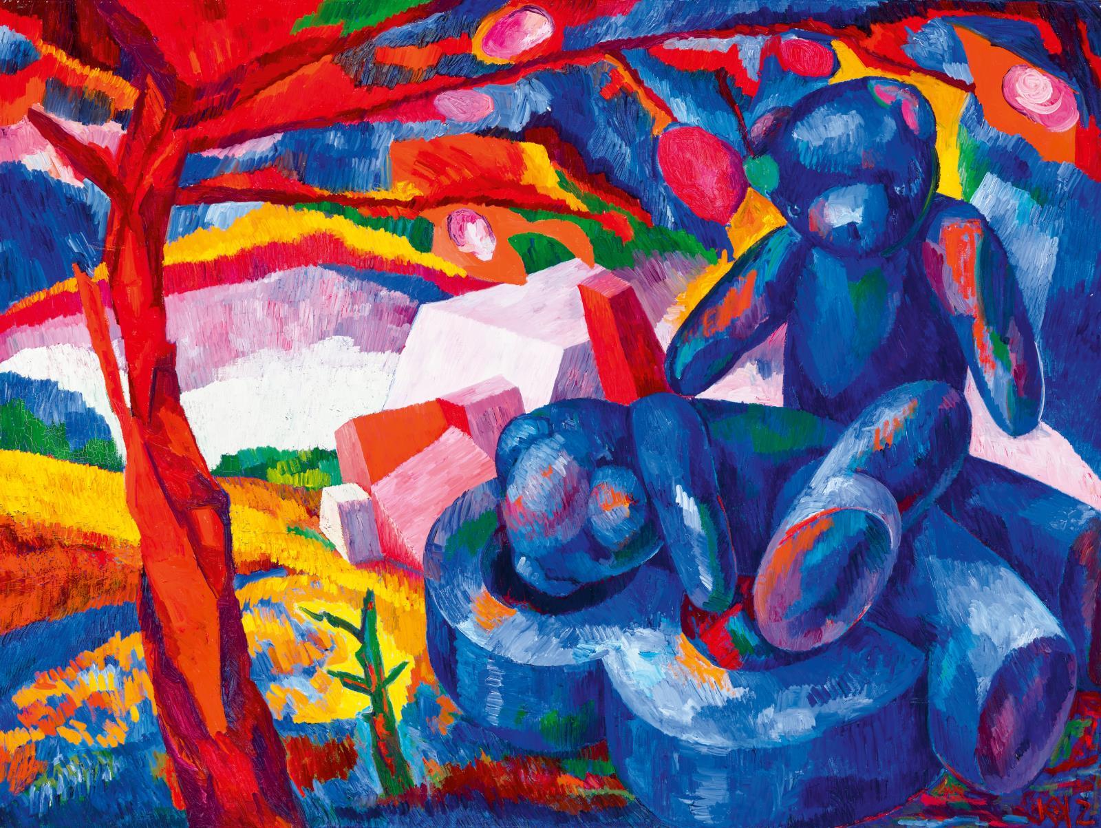 Jelezve balra lent: KK, A hátoldalon autográf felirat: 120 x 160 cm, Kelemen 2002 - Blue love on no.8.-/ Signed lower left: KK, On the reverse: 120 x 160 cm, Kelemen 2002 - Blue love on no.8.-