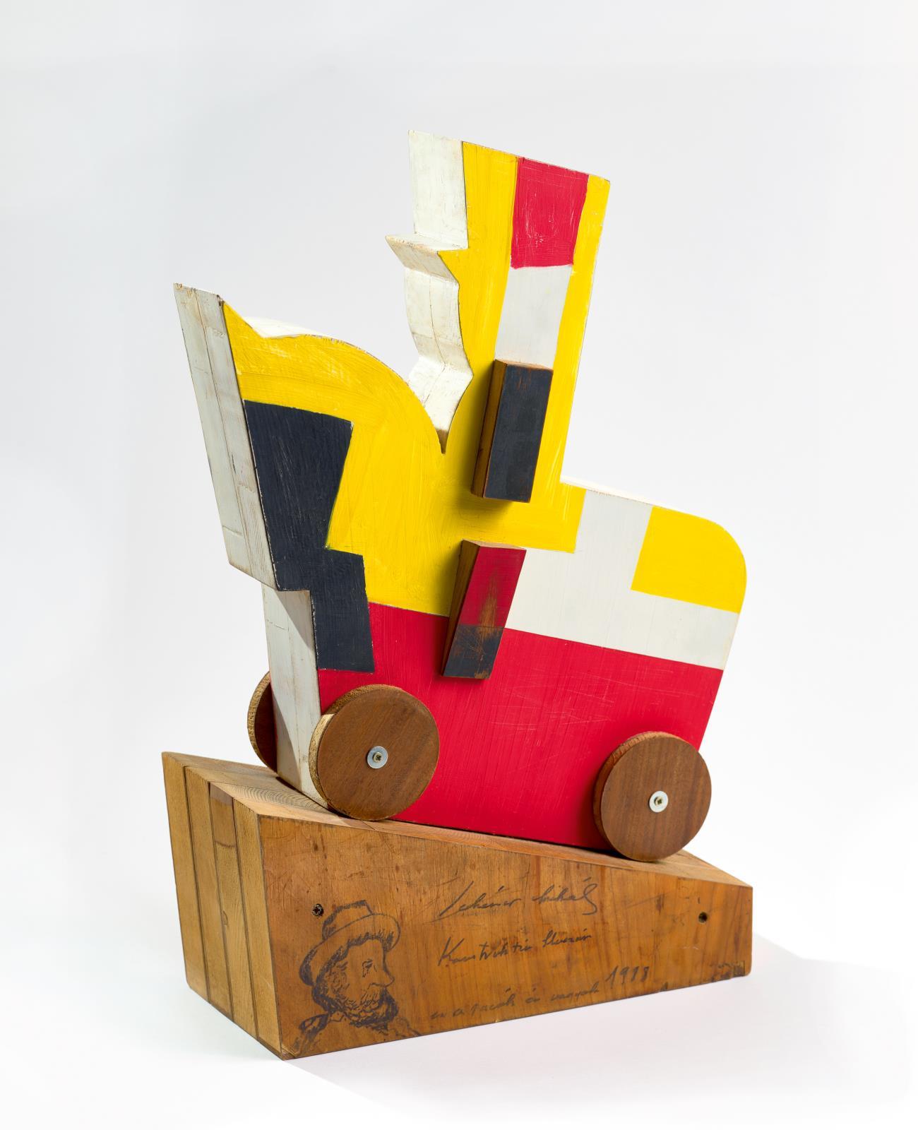 Jelezve a fa talapzaton: Schéner Mihály Konstruktív huszár, Ez a pacák én vagyok 1988/ Signed lower: Schéner Mihály Konstruktív huszár, Ez a pacák én vagyok 1988