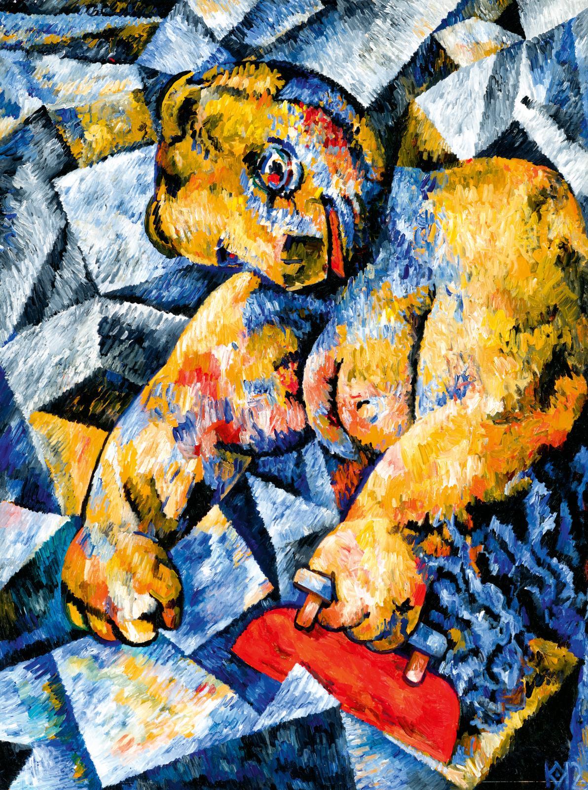 vászon Kelemen 2002 – Vasaló medve – szürke verzió/ Signed lower right: KK, On the reverse autograph inscription: 160 × 120 cm akril, vászon Kelemen 2002 – Vasaló medve – szürke verzió
