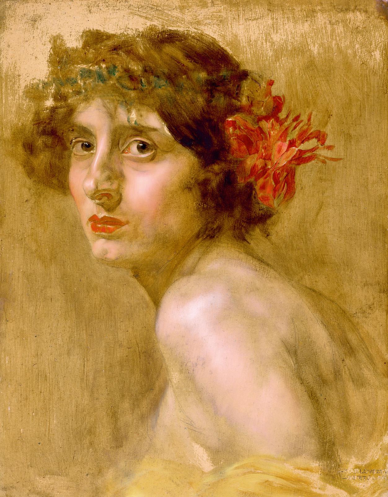 261 Karlovszky Bertalan: Női portré virággal a hajában (Gloriosa)