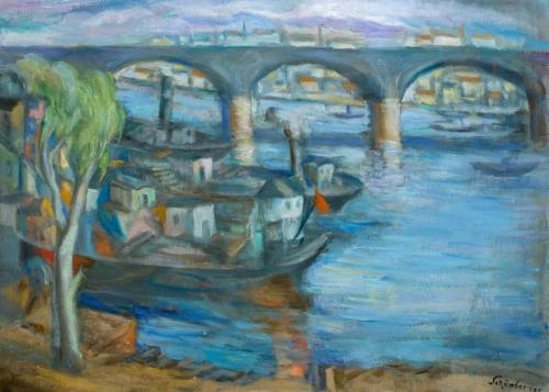46 Schönberger Armand: Duna-part (Margit-híd), 1930 körül