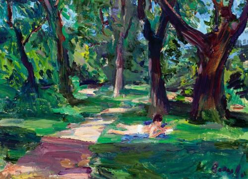 47 Balogh András: Napfénynél olvasgató a nyári parkban
