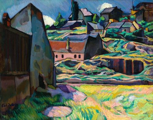 60 Pál István: Napsütötte táj házakkal (Budapest, Tabán), 1921