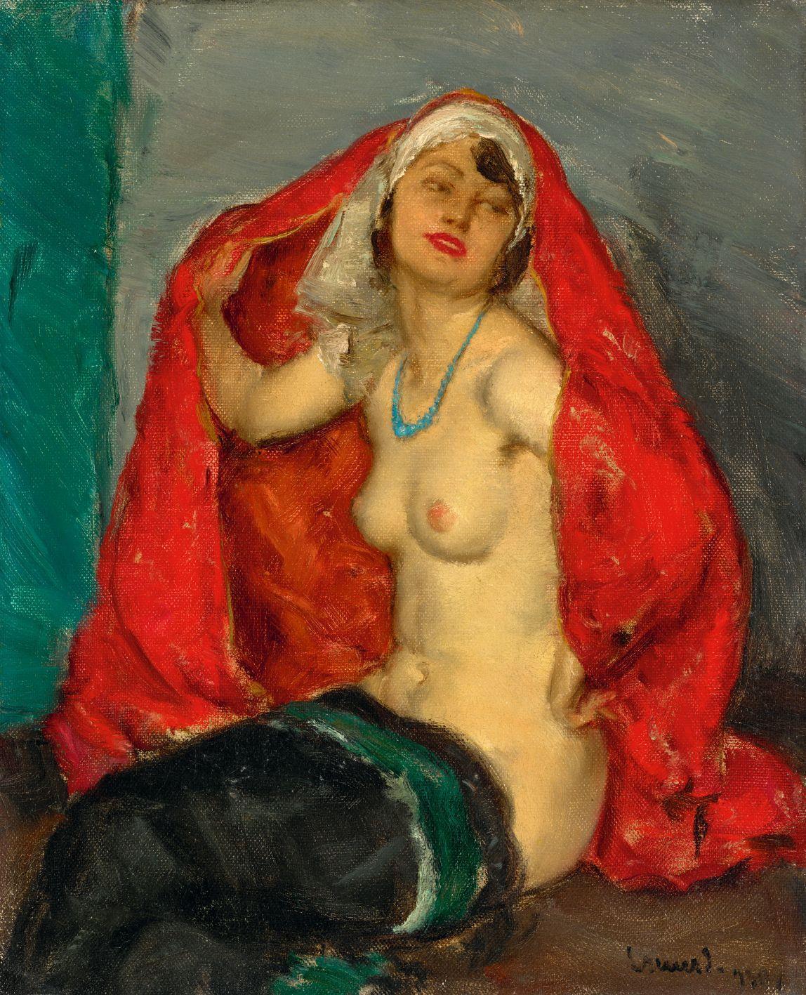101 Czencz János: Kacér modell vörös kendővel és gyöngysorral, 1936