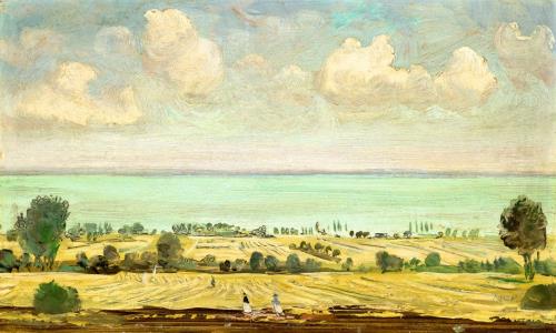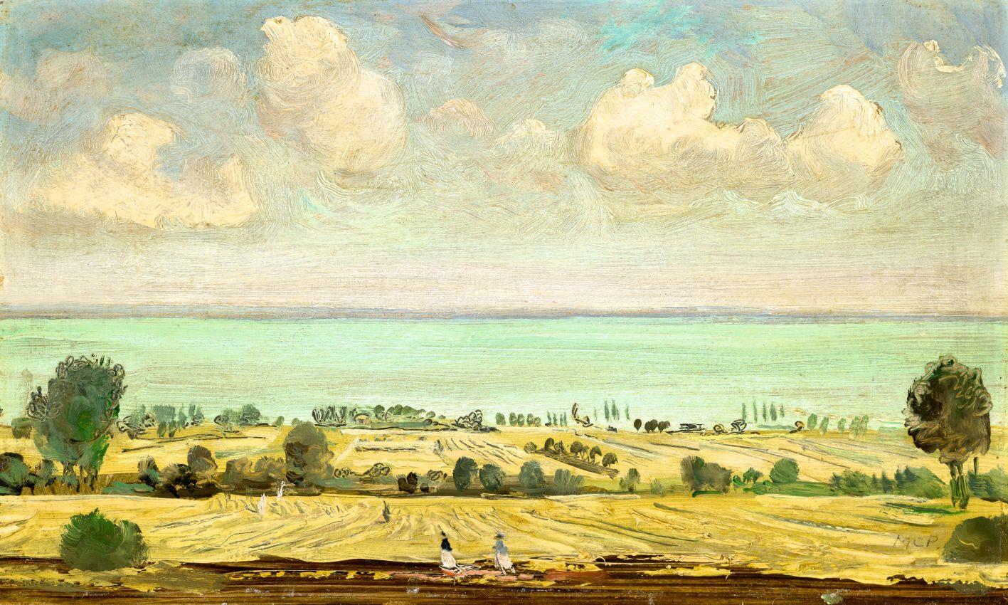 171 Molnár C. Pál: Balatonpart bárányfelhőkkel