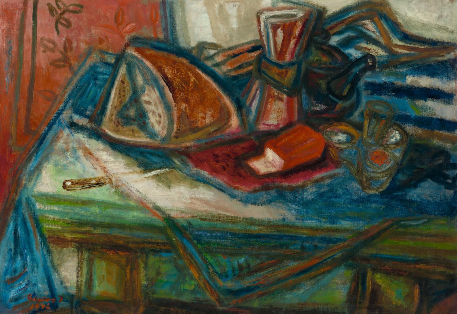 81 Ámos Imre: Asztali csendélet (Kenyér és só), 1942